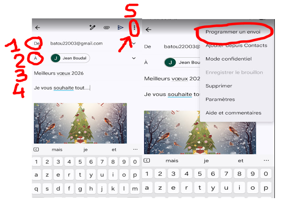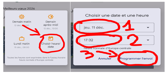 5/ Envoi Programmé : Appuyer sur les « … » en haut à droite.