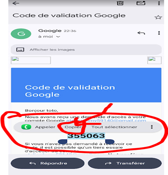 Montrer le cas de blocage de mon compte email Google