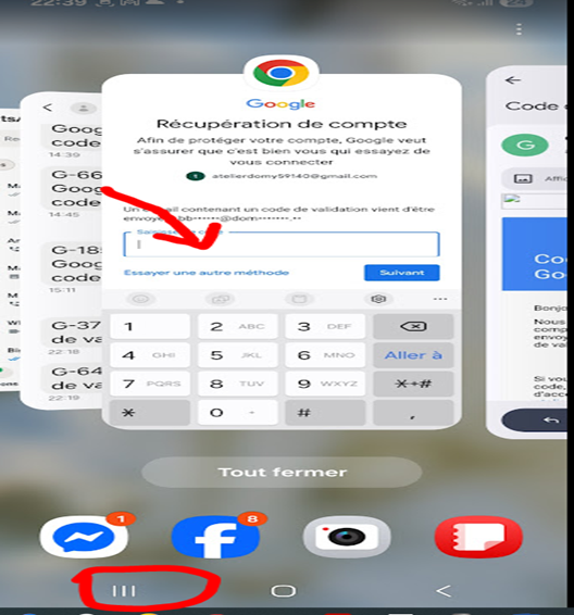 Puis je vais dans mes mails sans fermer la fenêtre avec le bouton page d’accueil « Carré ou rond » selon votre téléphone.