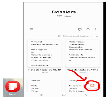 Puis ouvrir le « Bloc note » de samsung ou de votre téléphone.