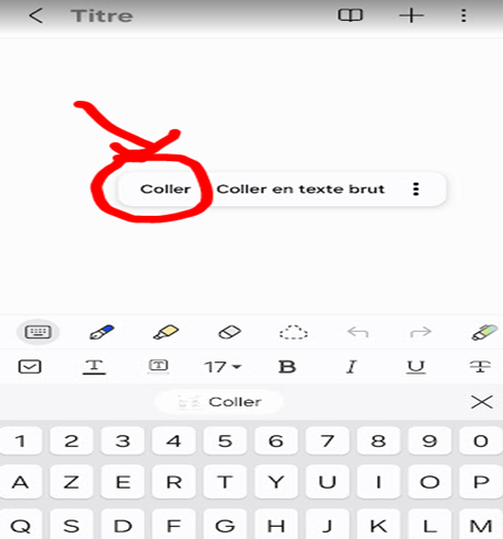 Puis appui long jusqu’à l’apparition du menu d’édition et « coller »