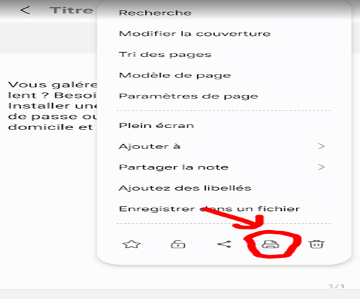 Puis en haut à droite les « … » pour afficher les options de la note.