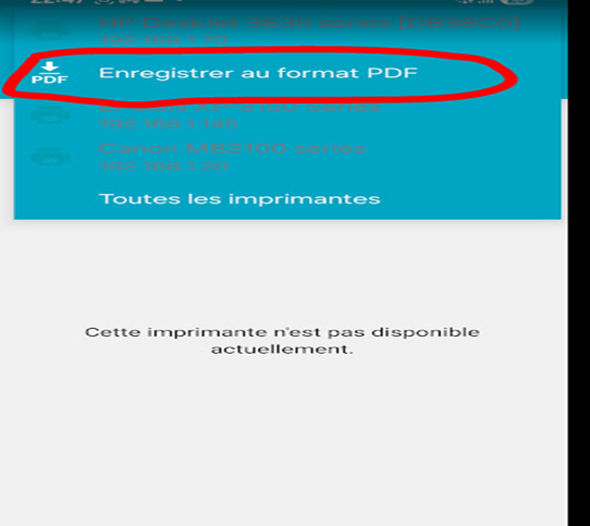 Choisir votre imprimante. Ici l’imprimante pdf car pas d’imprimante.